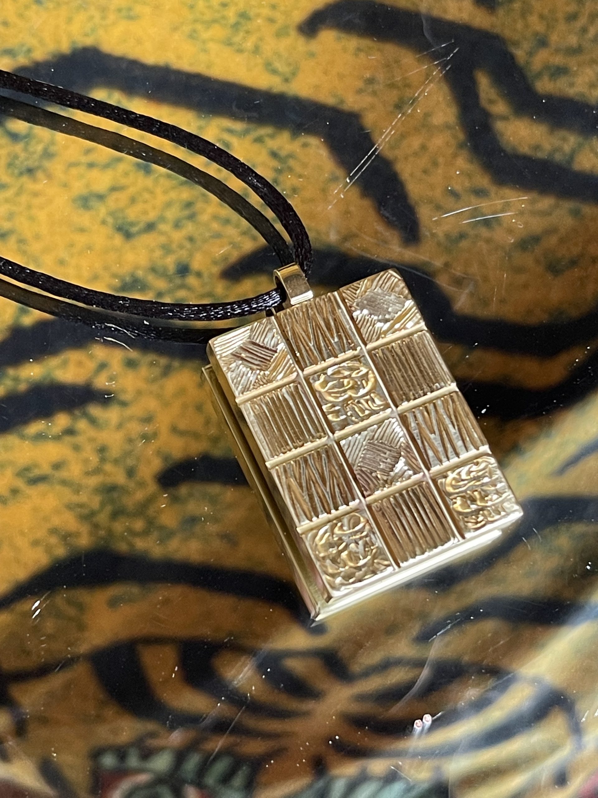 Le Mez tribu est un bijou talisman composé de 12 petits carrés gravés. Comme tous les bijoux de la Collection Mez, c’est un bijou en laiton lourd et présent que l’on sent et que l’on touche. I l peut être agrémenté d’une pierre naturelle