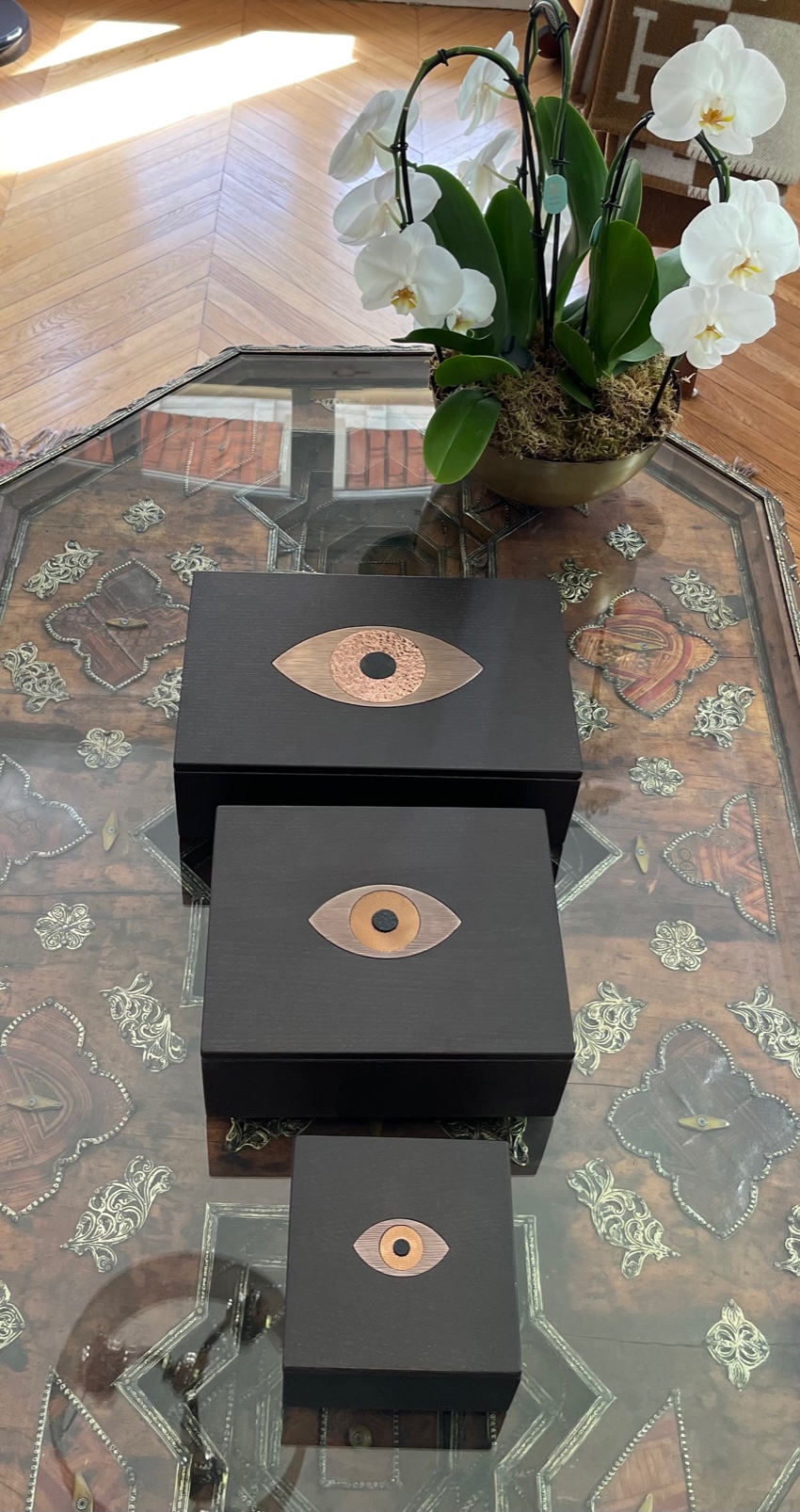 Boite Eye avec Oeil inscrusté en 3 parties gravées Les cuivrés Grand Modèle