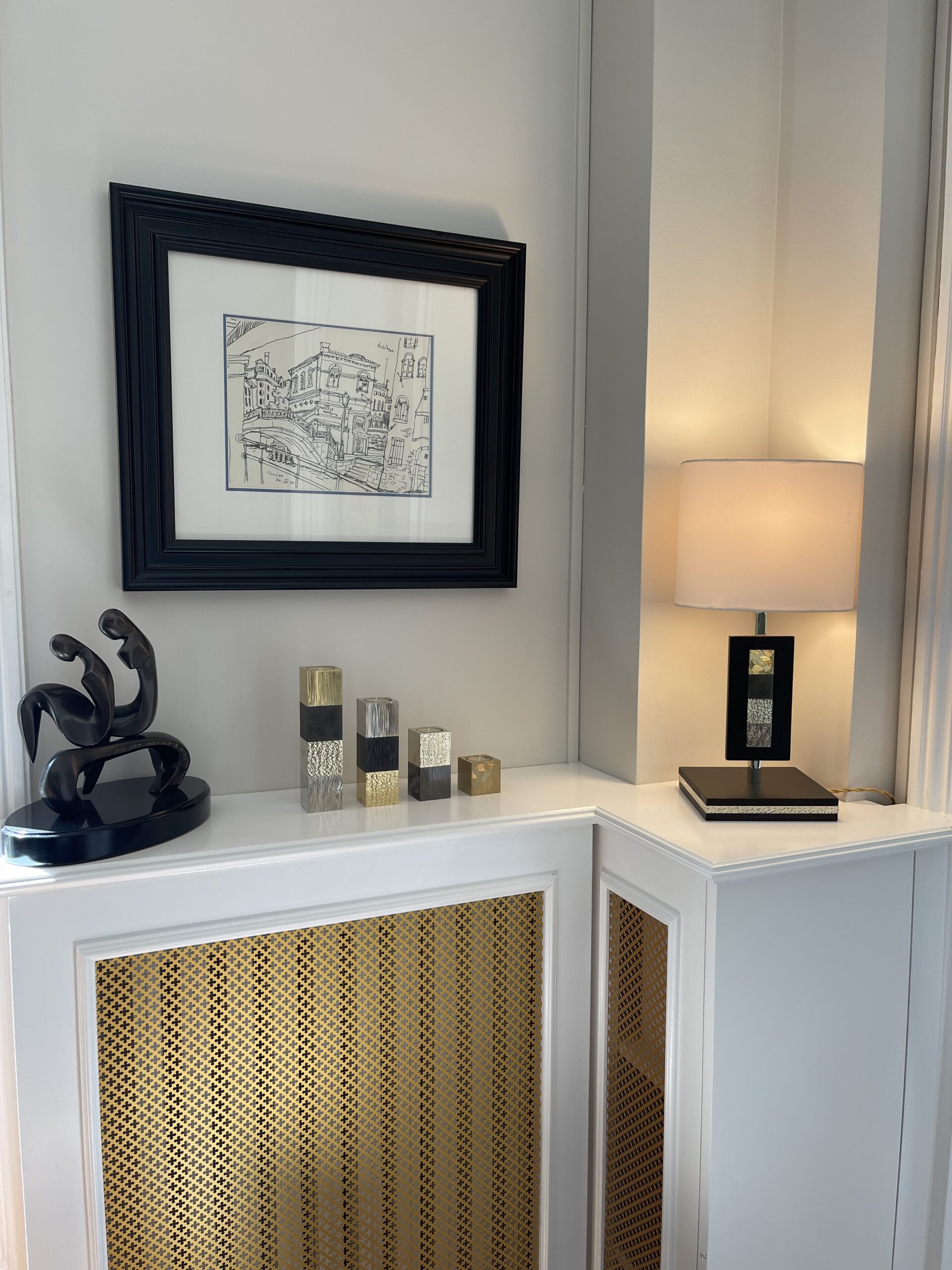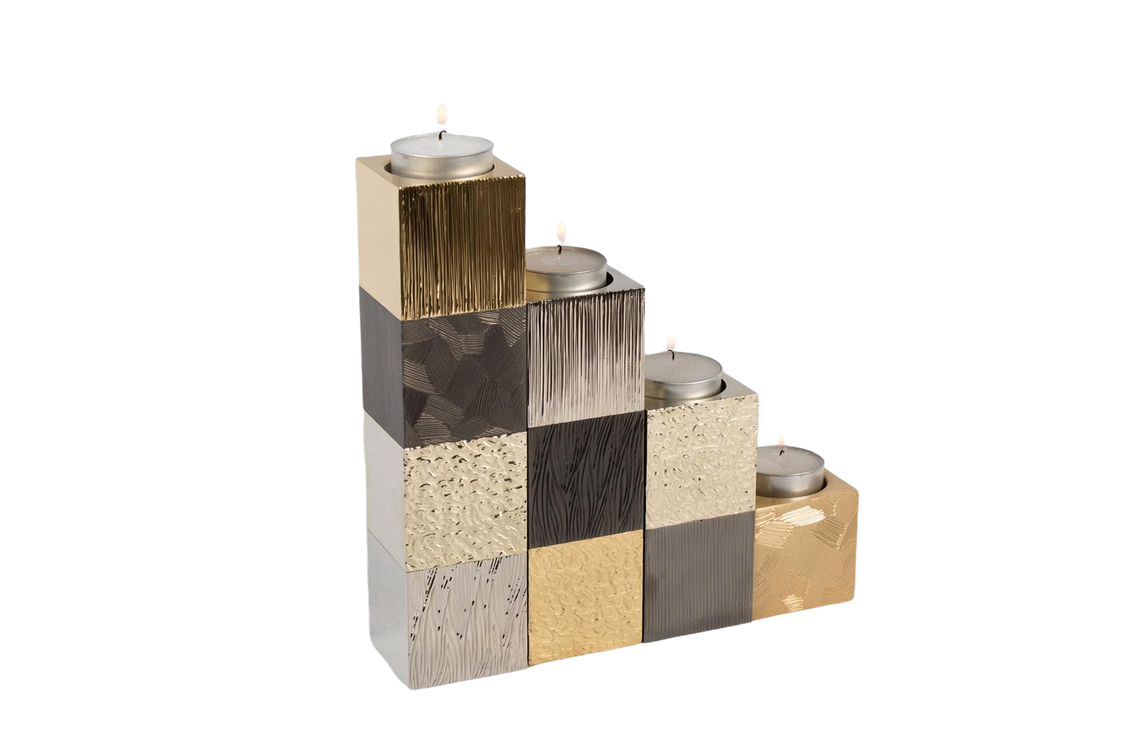 Bougeoir carré 4 modules en laiton massif Nickel brillant, champagne, gun metal et or brillant, gravés sur deux faces et deux faces lisses.