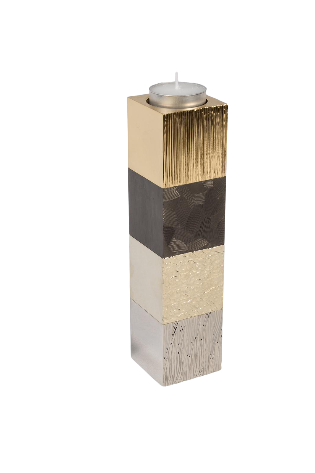 Bougeoir Mez carré les ors : 4 modules, Nickel brillant, champagne, gun metal et or brillant.