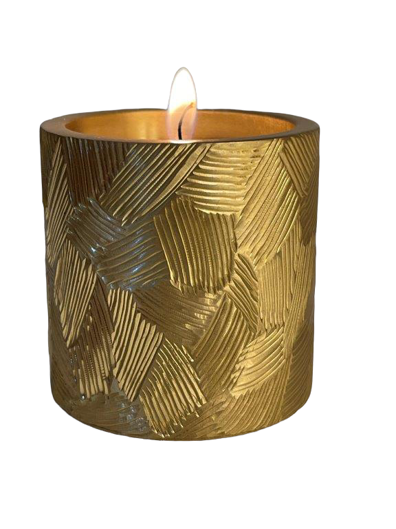 Bougeoir Mez rond 1 module gravé en laiton massif Or mat.