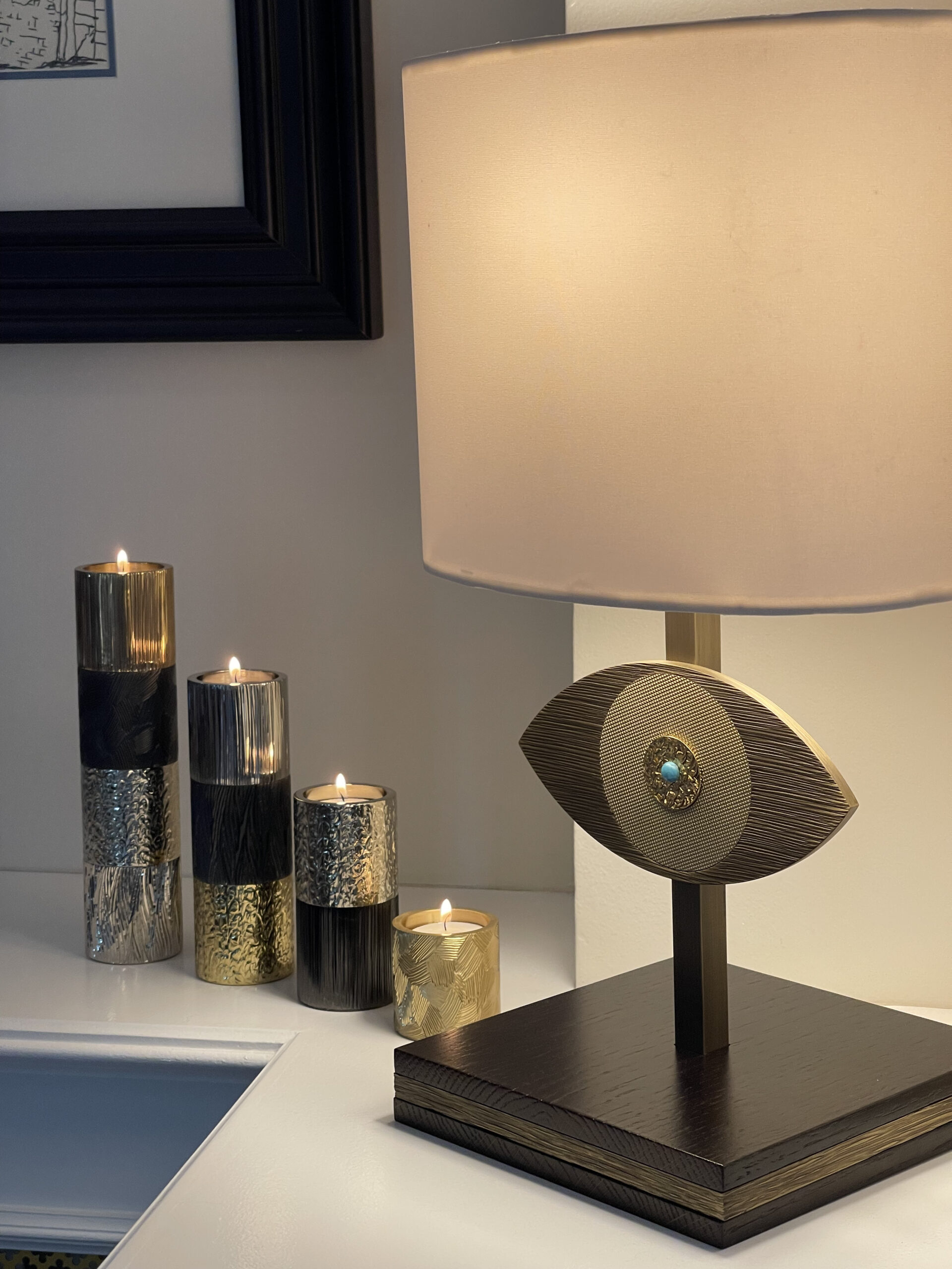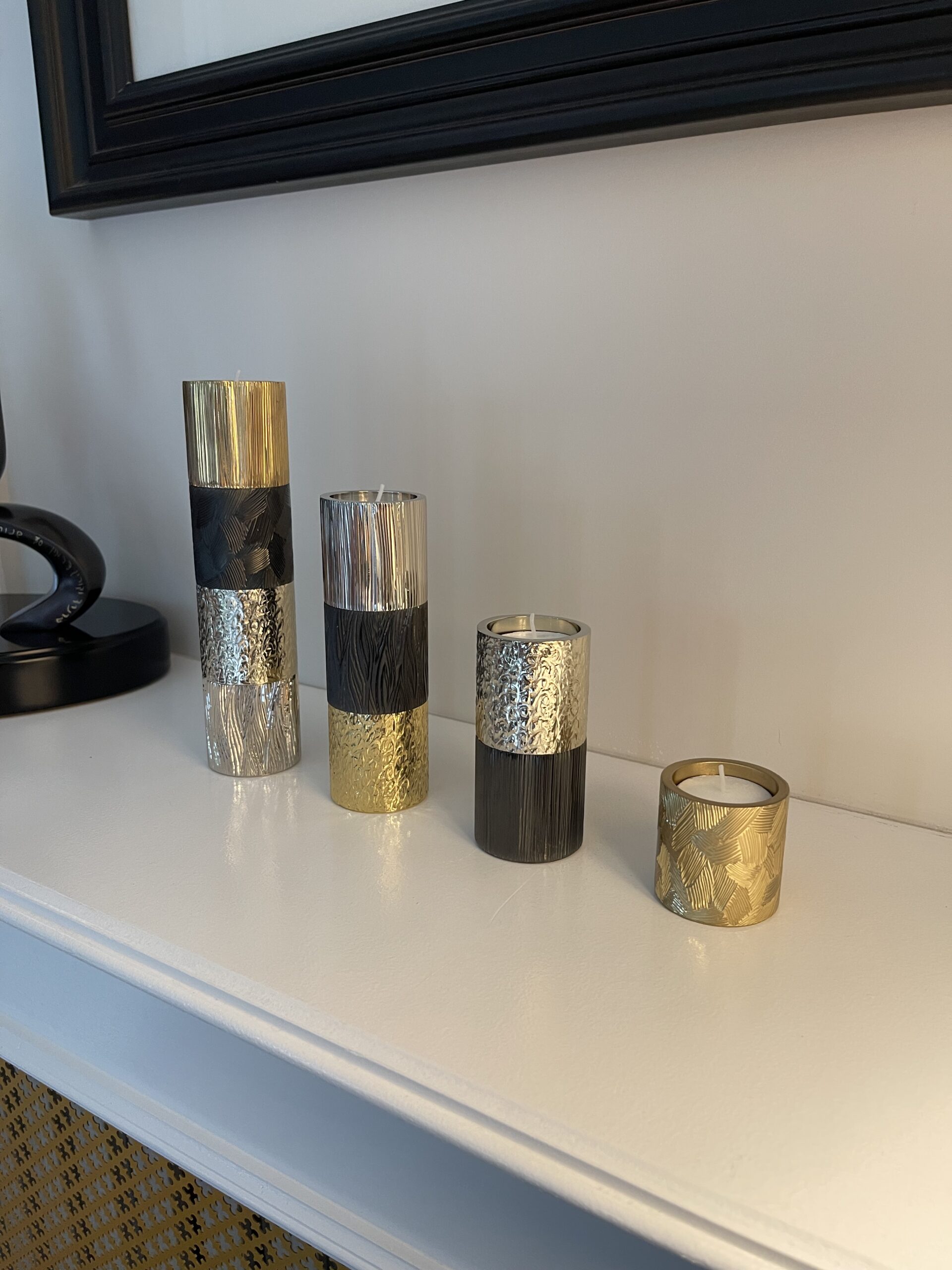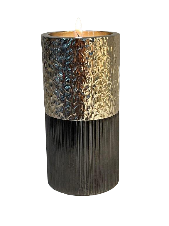 Bougeoir Mez rond les ors : 2 modules gun metal et champagne