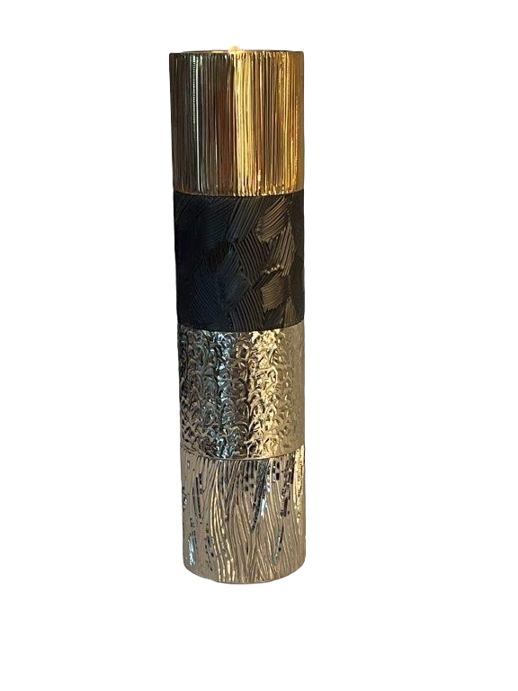 Bougeoir Mez rond 4 modules gravés en laiton massif nickel brillant, champagne, gun metal et or brillant .