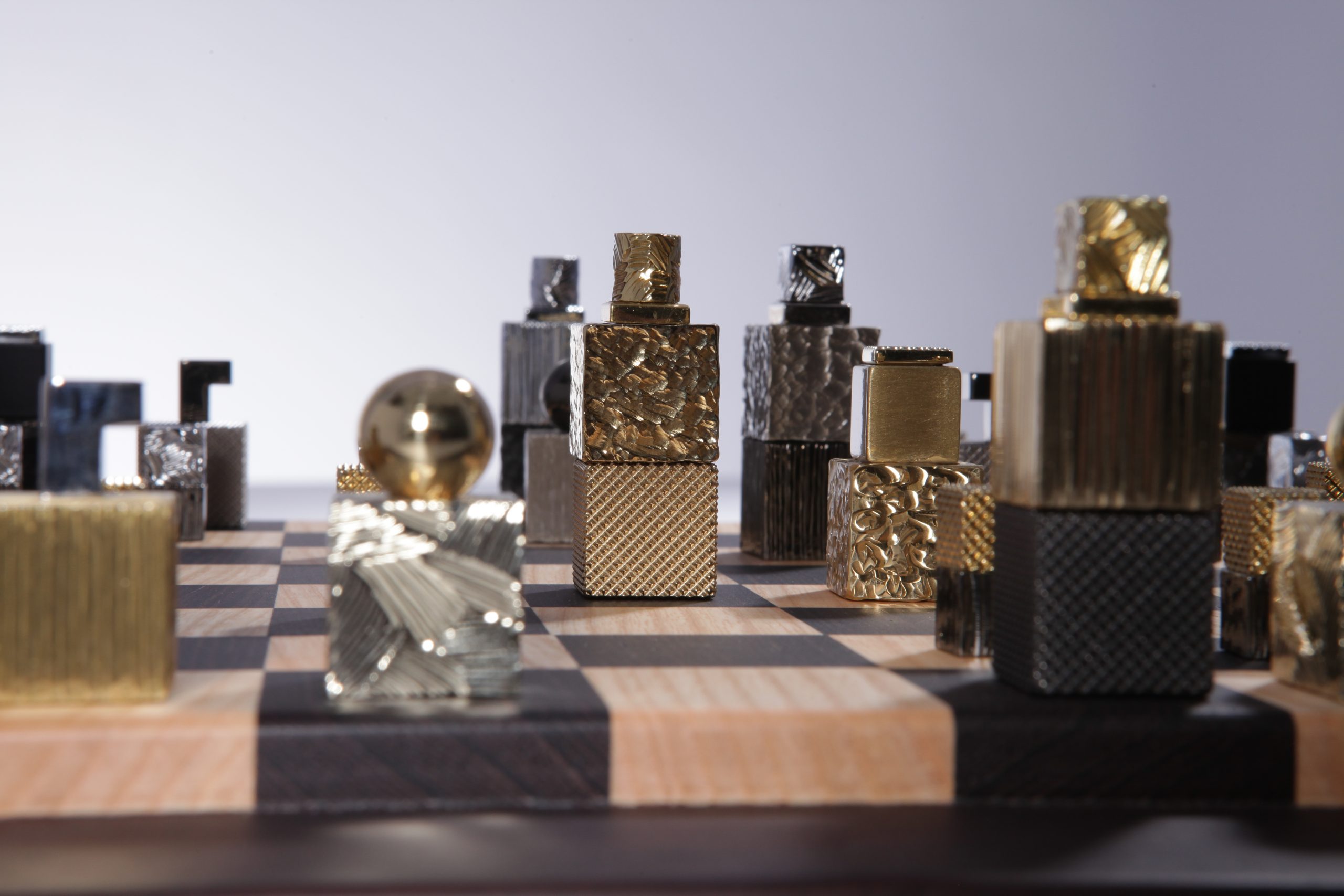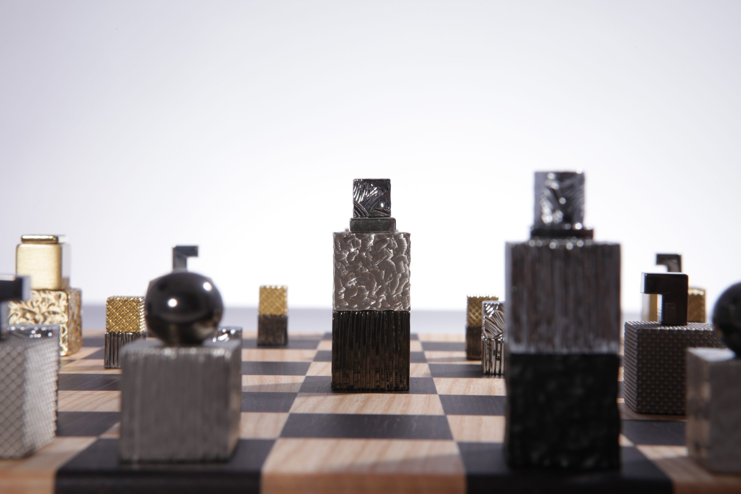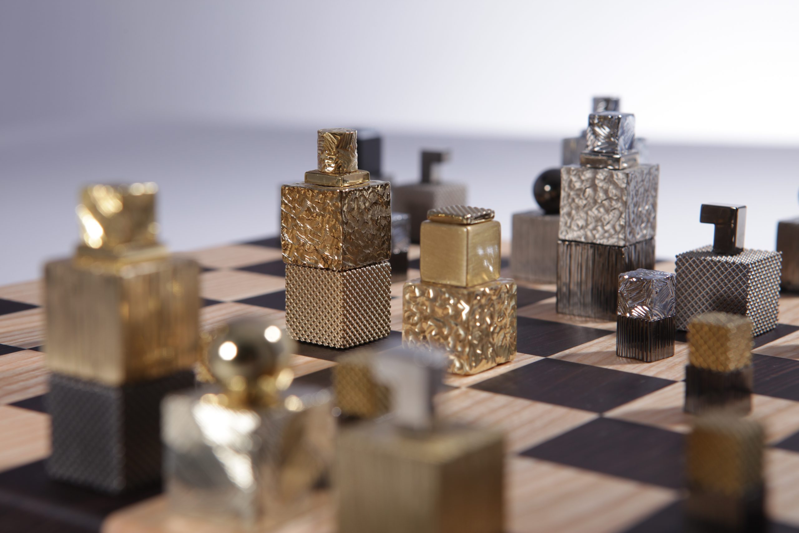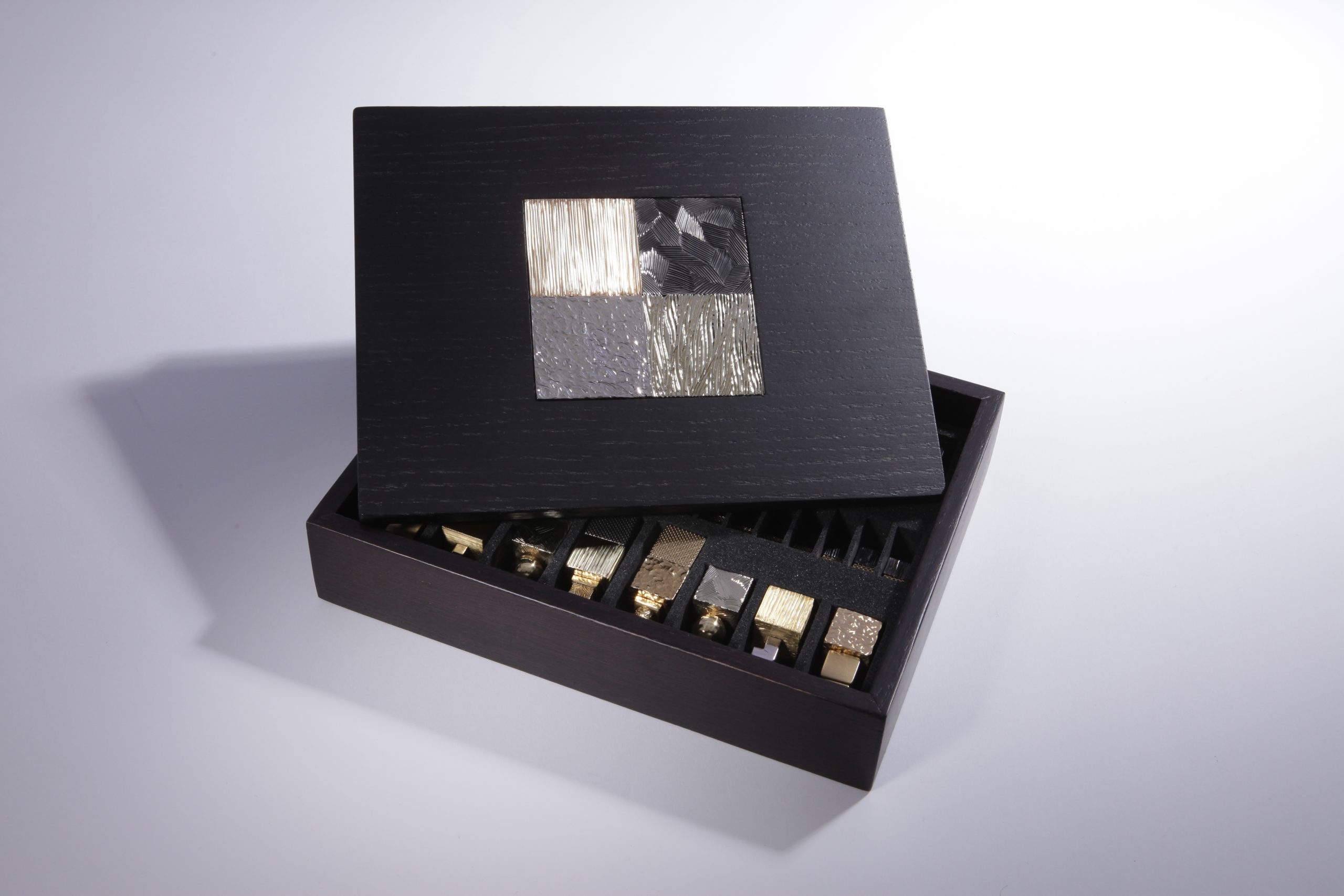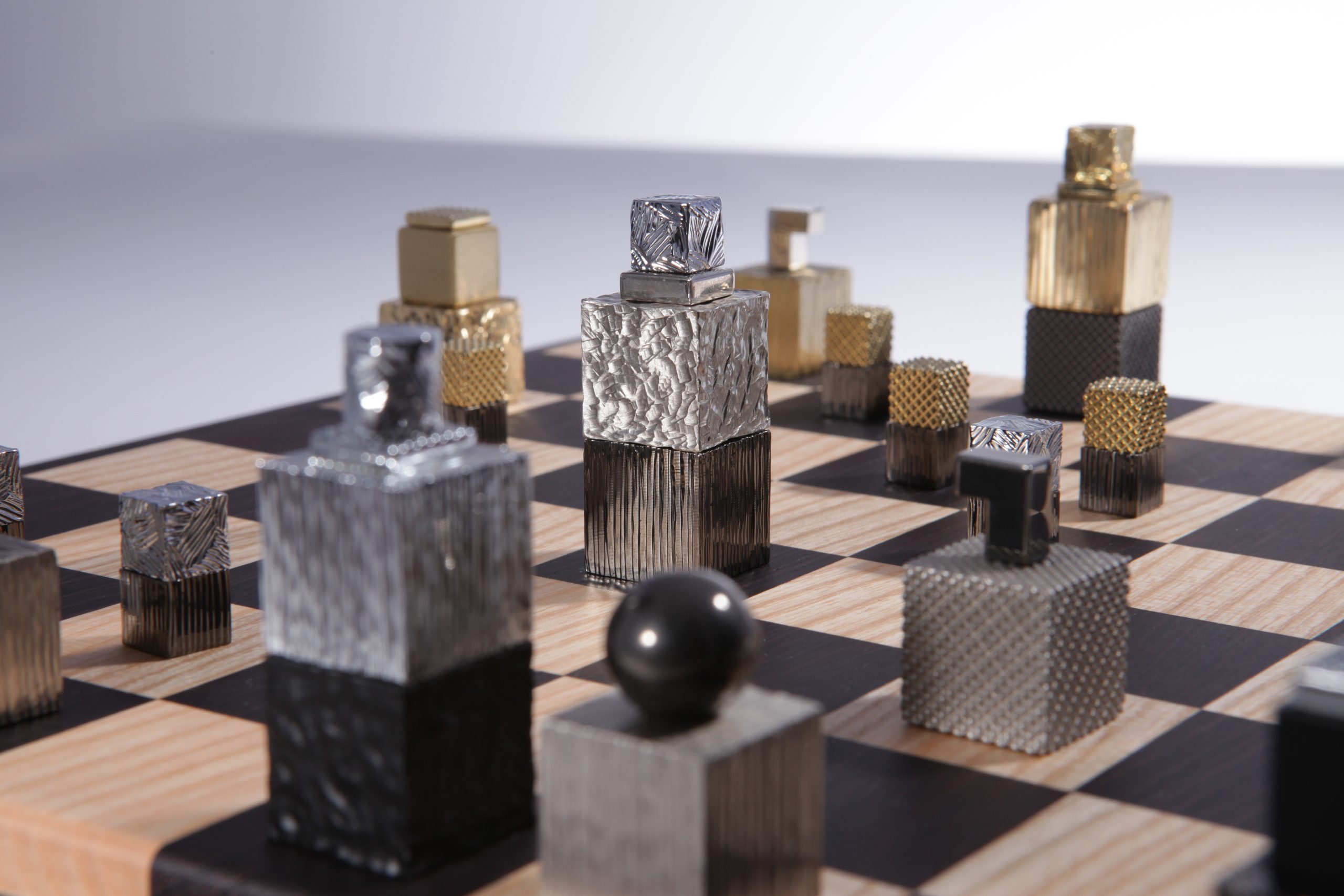 Le jeu est livré avec une boite écrin avec insert de laiton gravé et un plateau en bois façonné à la main en bois wengé et châtaignier par des artisans ébénistes.  Chaque pièce composant le jeu d’échecs est unique et des variations de teintes de bois peuvent apparaitre, les photos des plateaux et des boites sont non contractuelles.