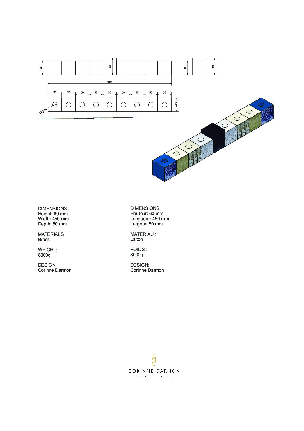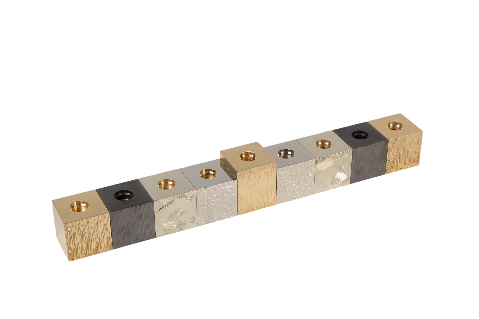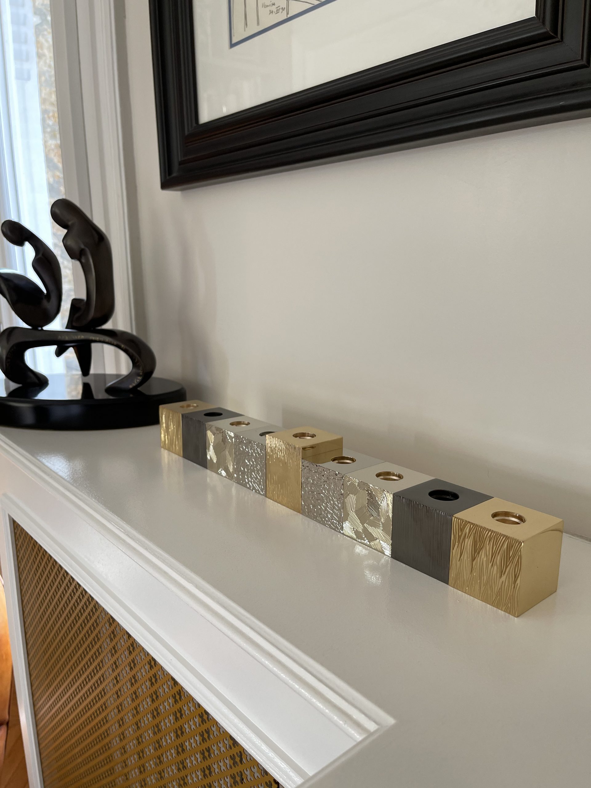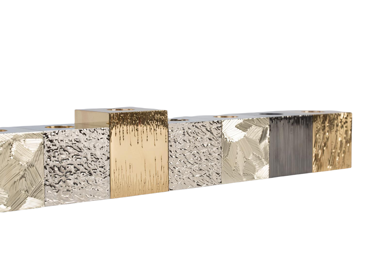 Grand bougeoir pour la fête de Hanouka composé de 9 cubes gravés et assemblés à la main en laiton massif.