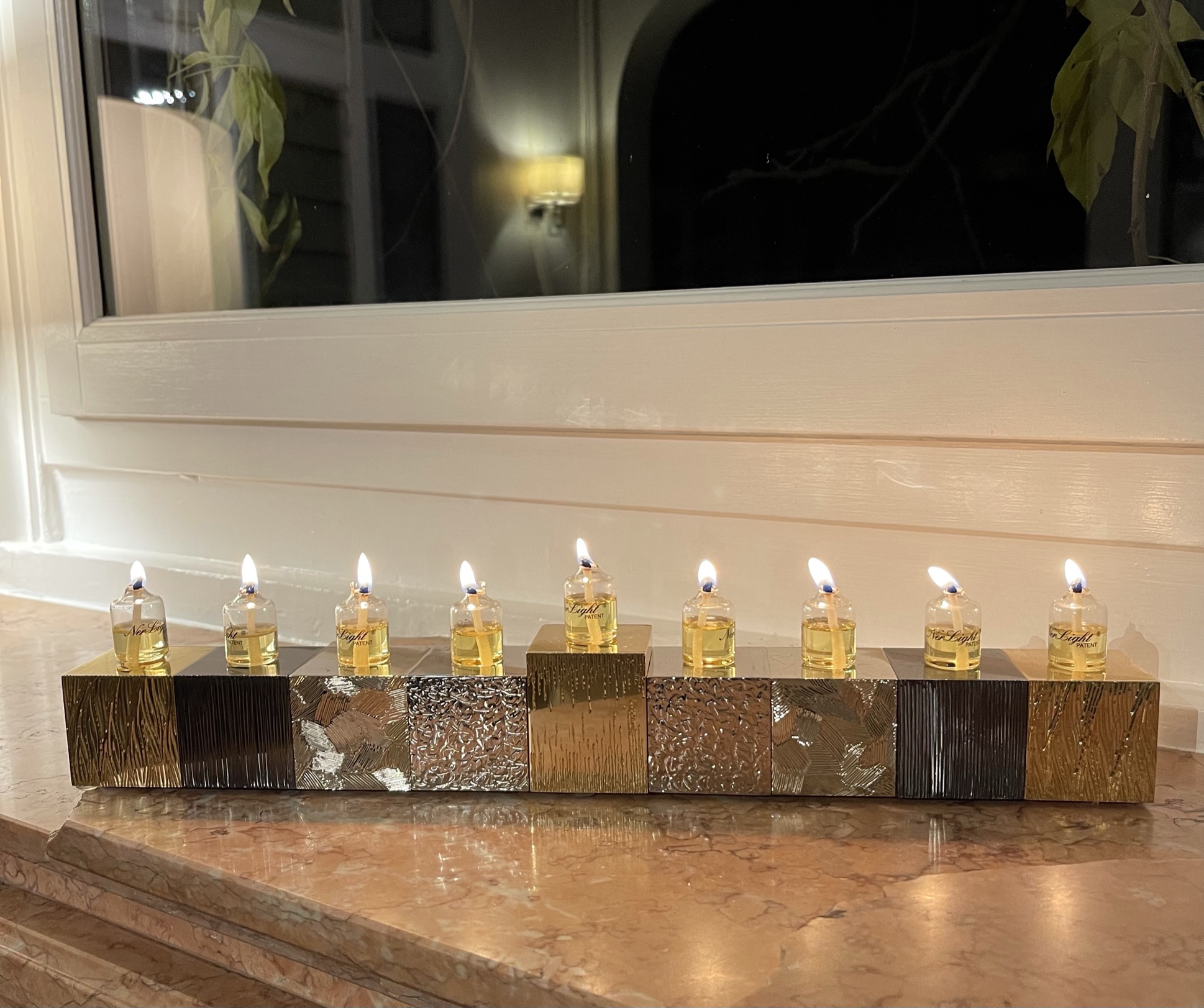 Les trous sont faits pour recevoir les fioles d’huile « Ner Light » du commerce