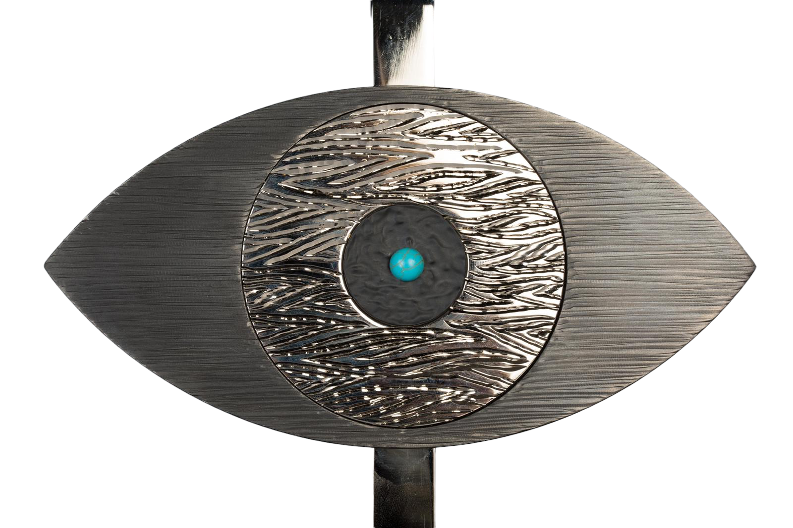Fournie avec une pierre naturelle turquoise au centre de la pupille.