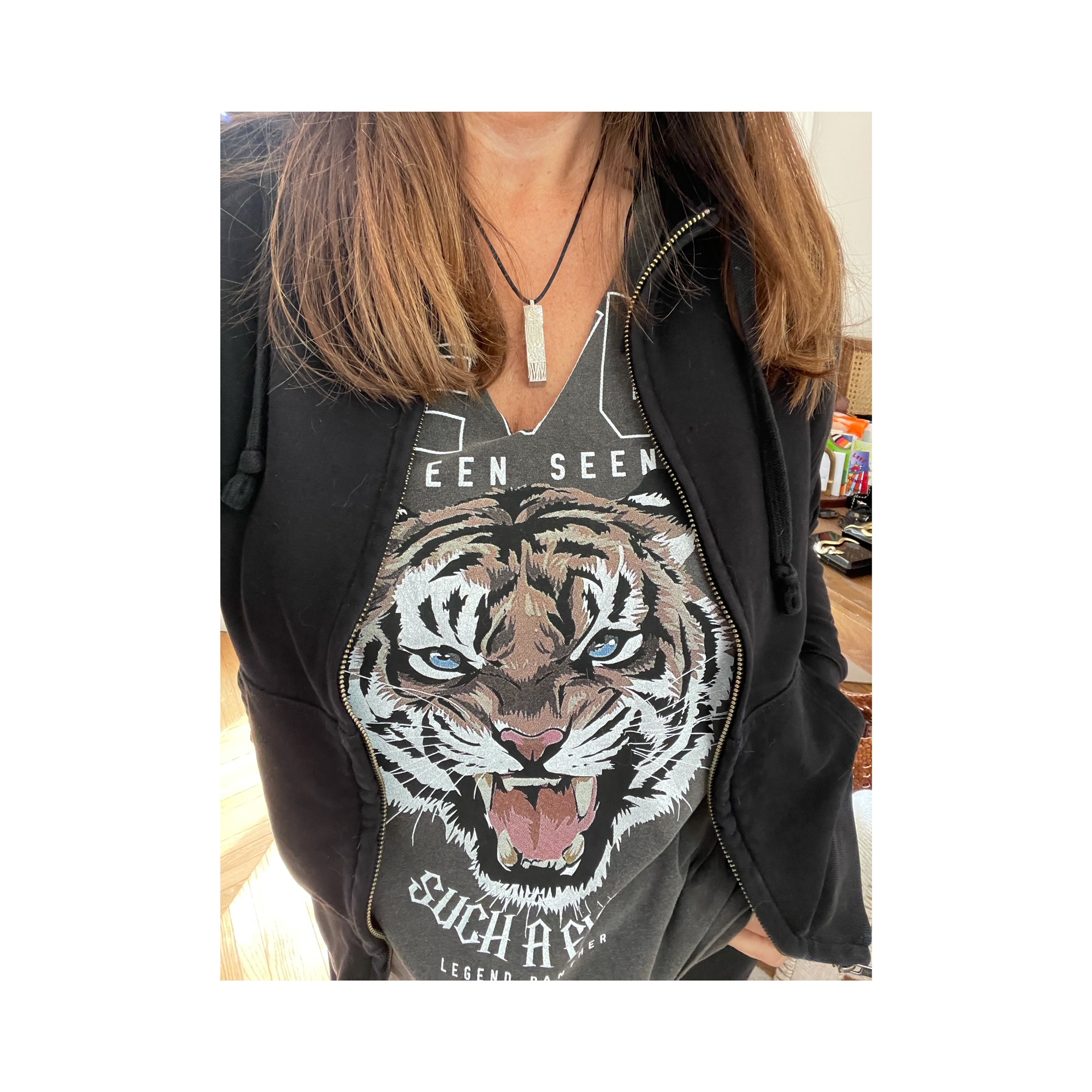 Pendentif Le Mez en laiton massif finition chromé et gravé d’environ 29 gr livré avec un lien en satin noir et petit fermoir ajustable en laiton.