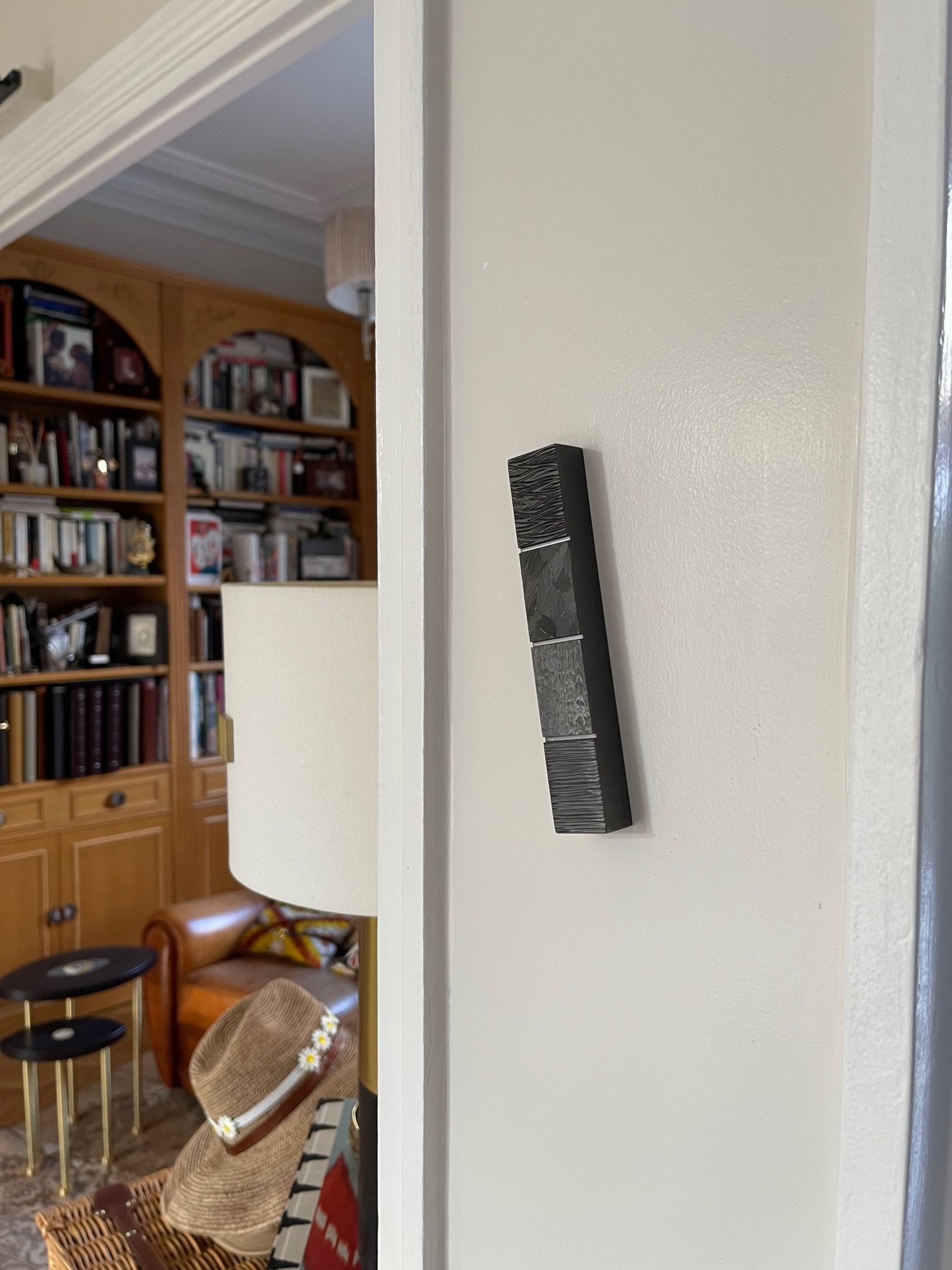 Mezouza Mez en laiton massif gravé Gun metal avec 4 motifs différents.
