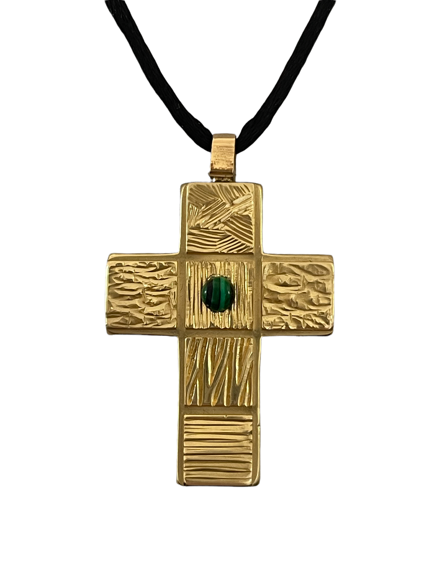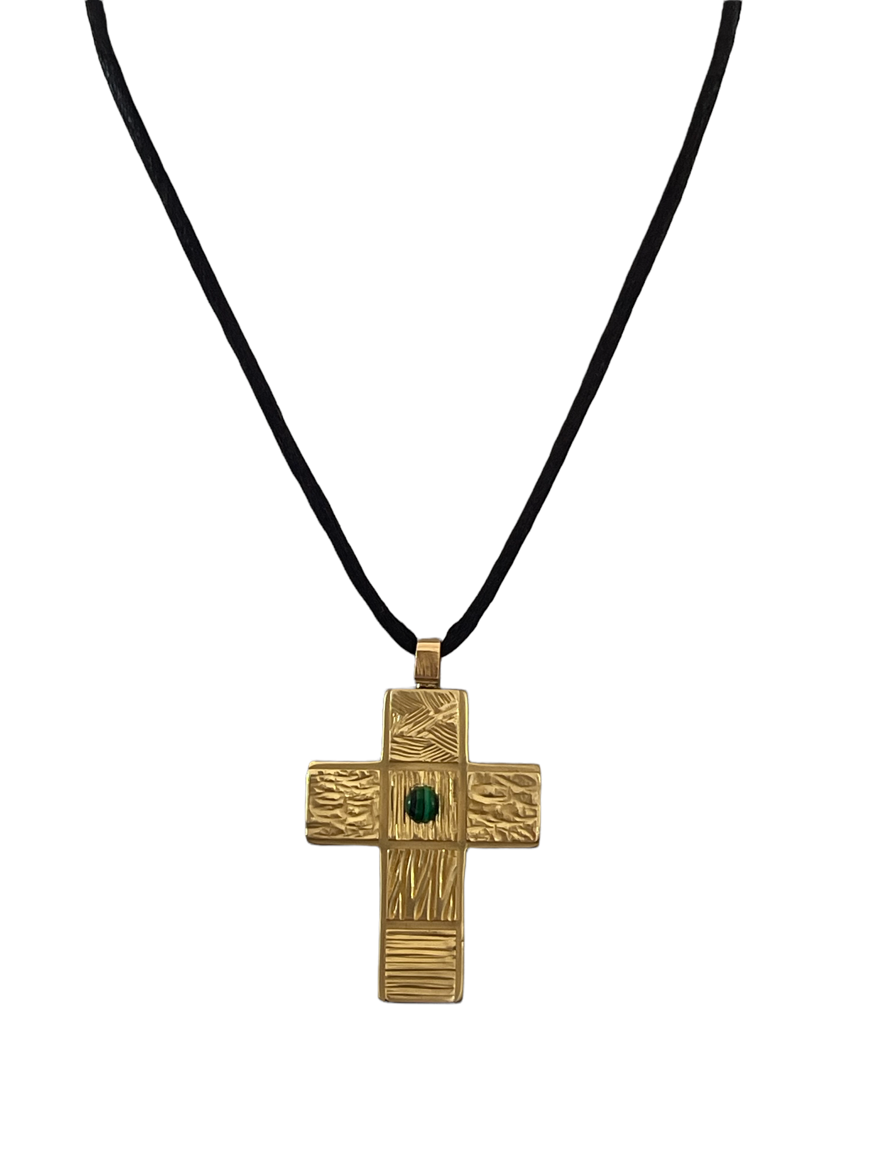 Pendentif Cross – Croix en laiton gravé 6 motifs et malachite