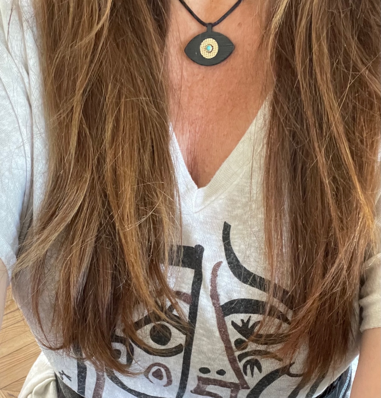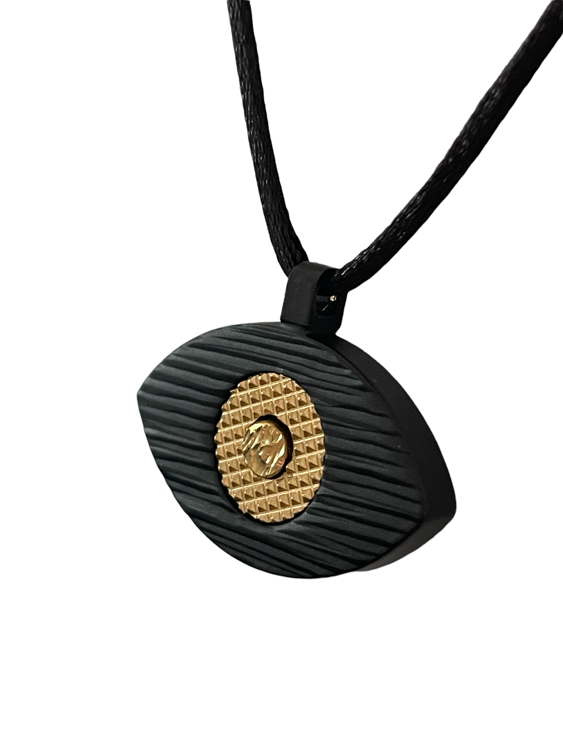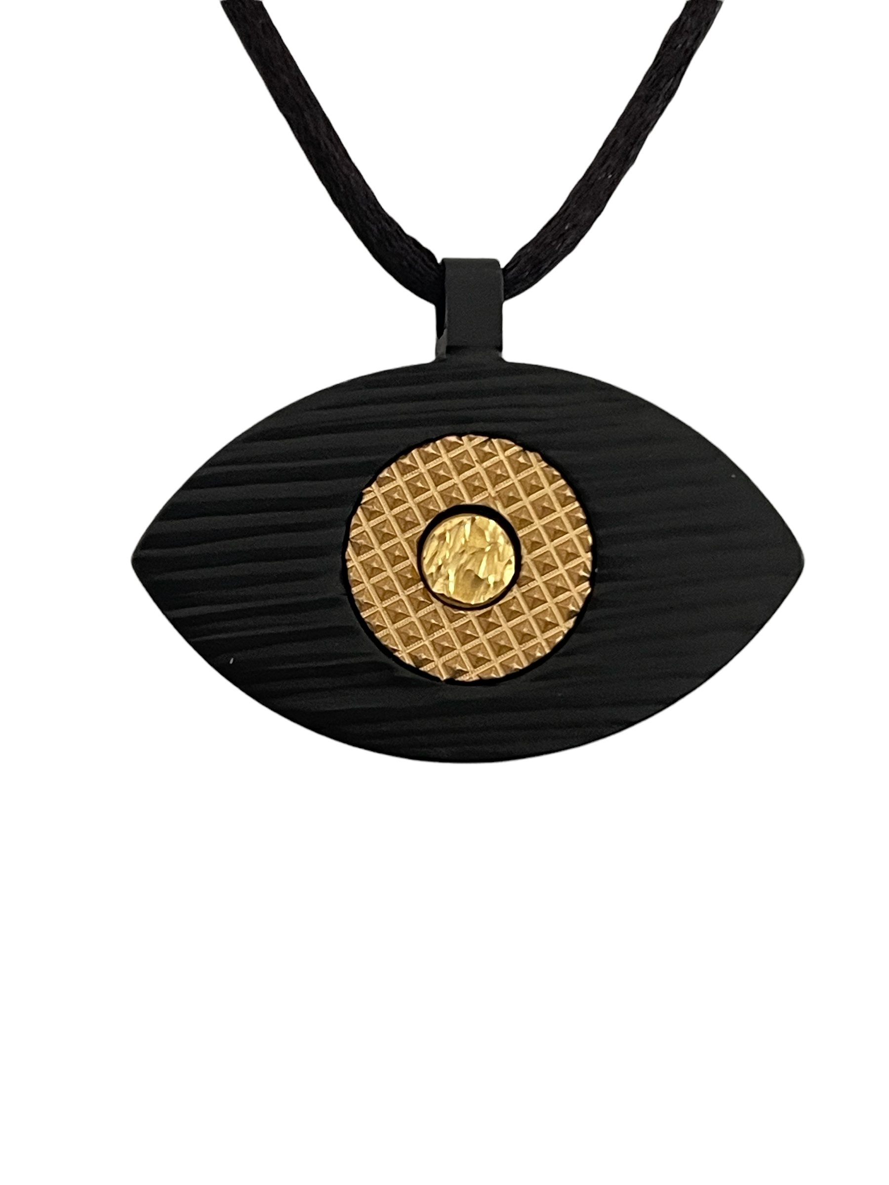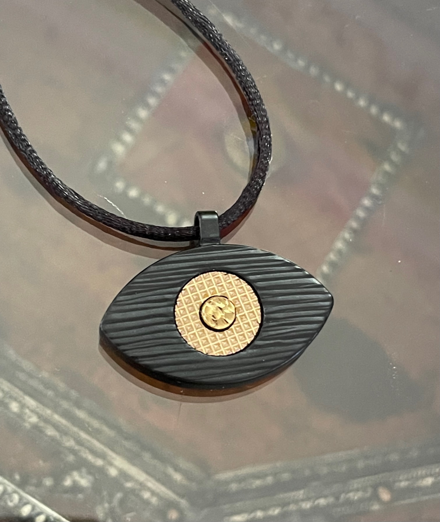 Pendentif Eye – Oeil gravé en 3 parties noir et or