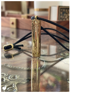 Pendentif Le Mez secret en laiton massif doré « Rain », gravé d’environ 29 gr livré avec un lien en satin noir et petit fermoir ajustable en laiton.