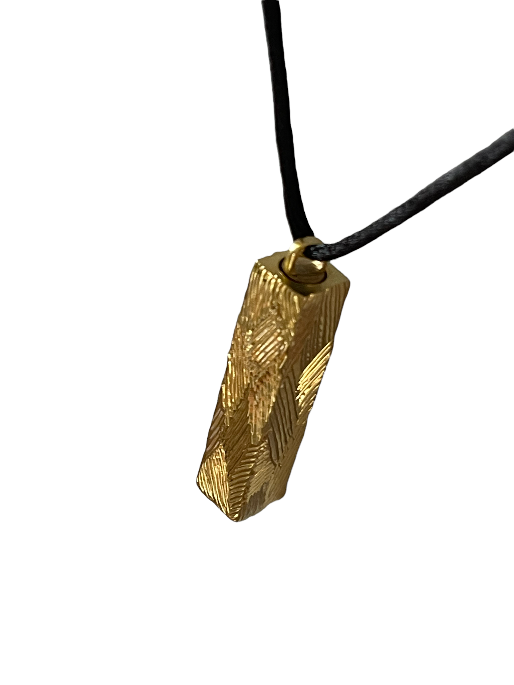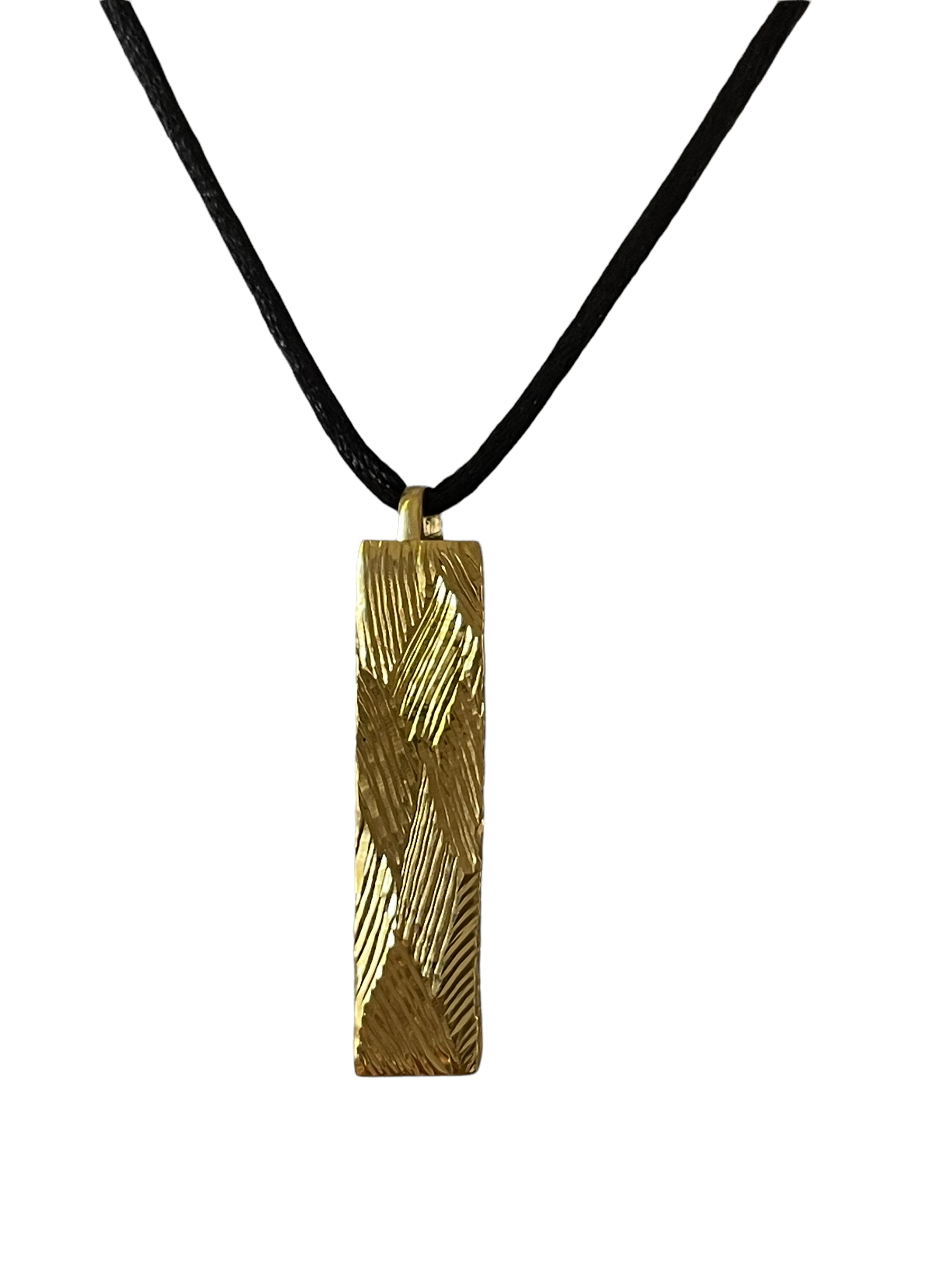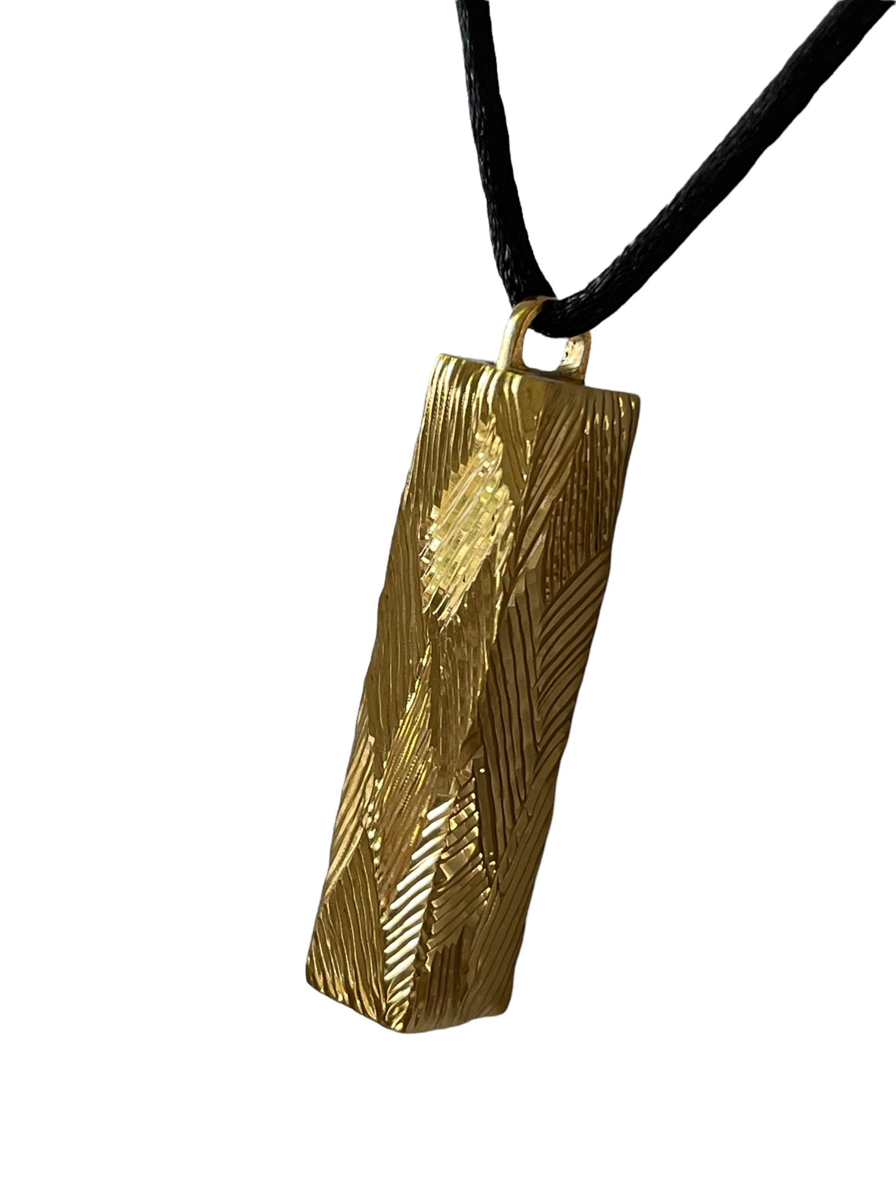 Pendentif Le Mez secret en laiton massif doré « Art-Déco », gravé d’environ 29 gr livré avec un lien en satin noir et petit fermoir ajustable en laiton.
