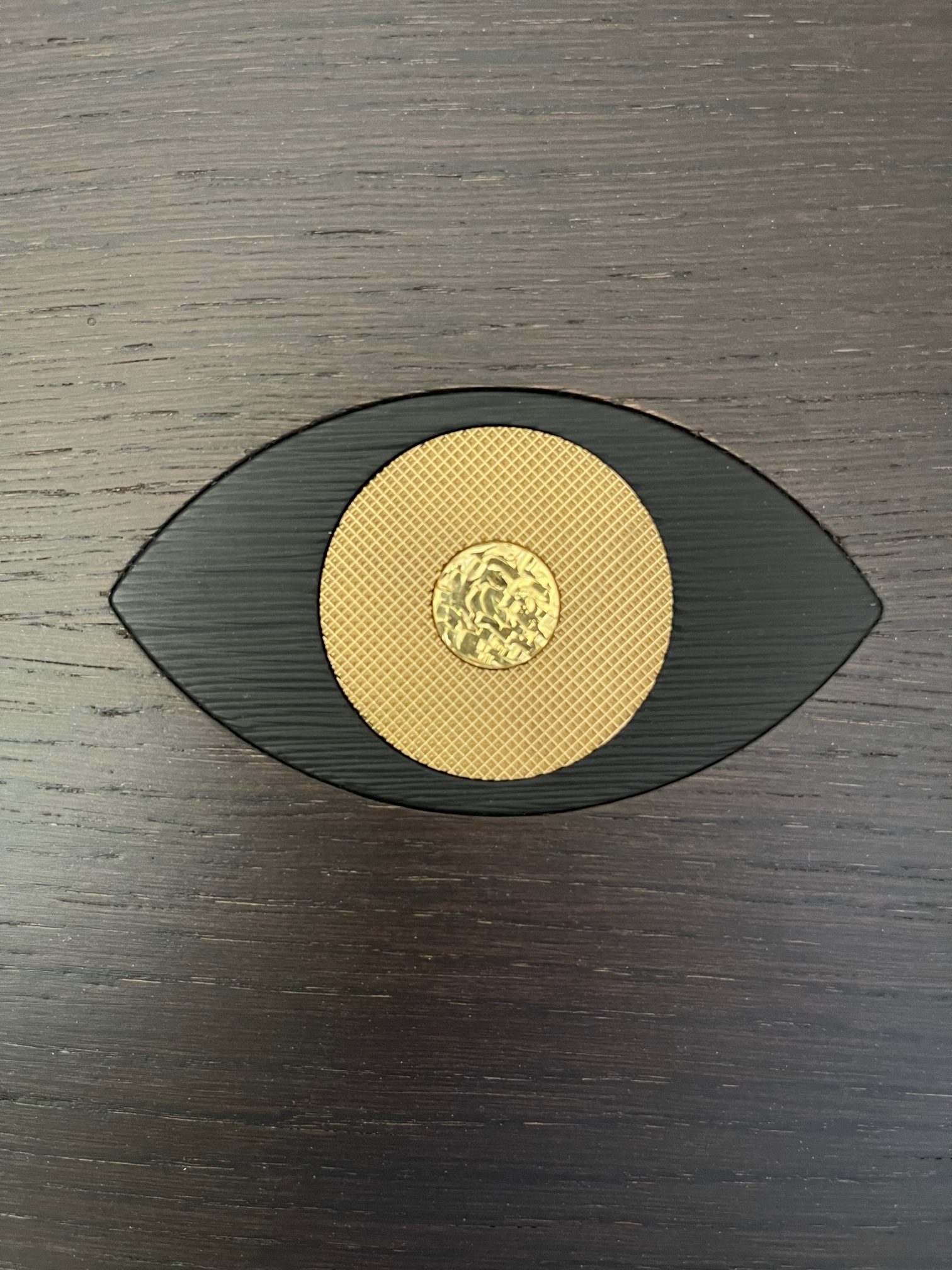 Plateau Eye en bois et Oeil en laiton massif gravé en 3 motifs Noir & Or