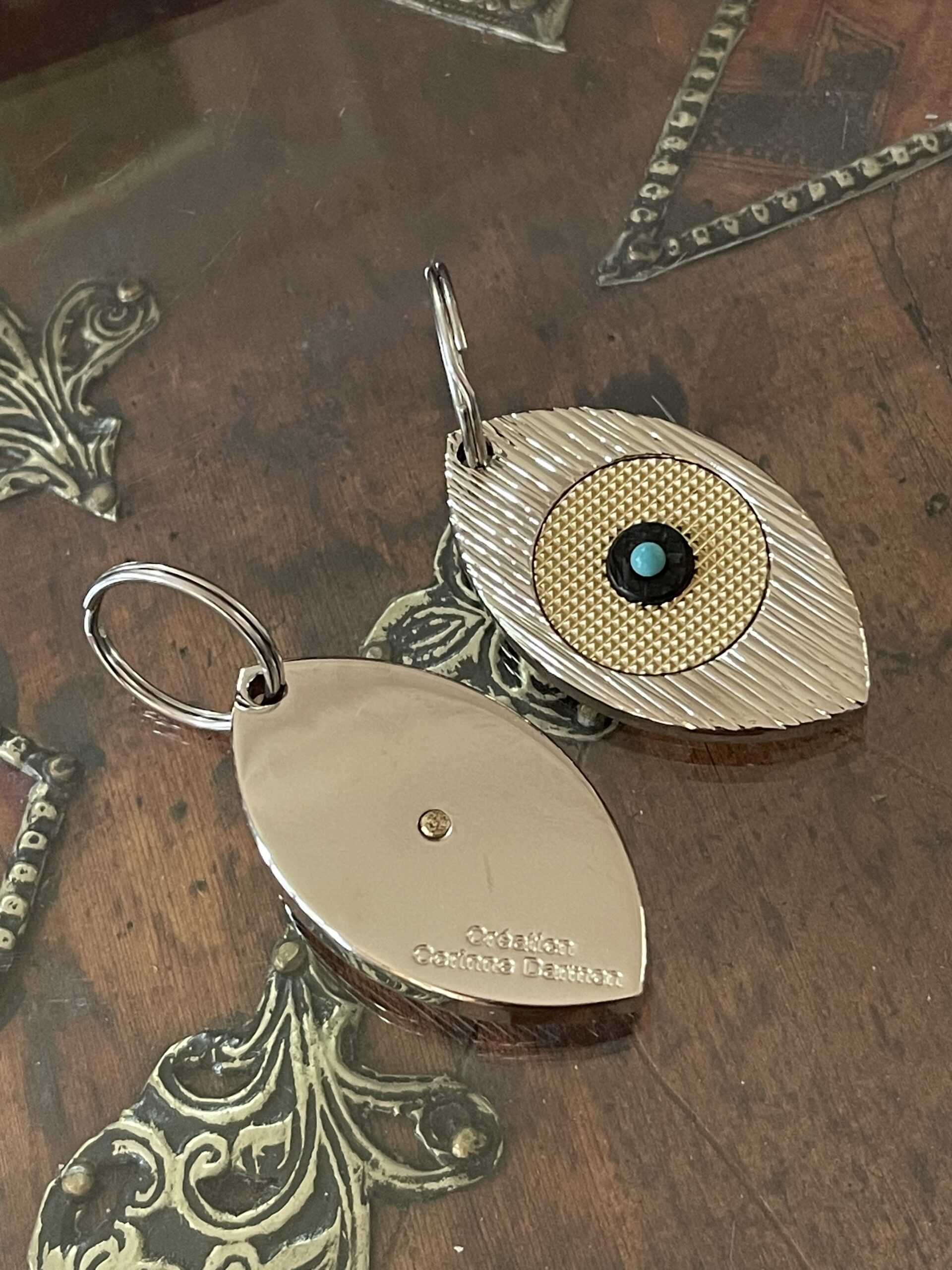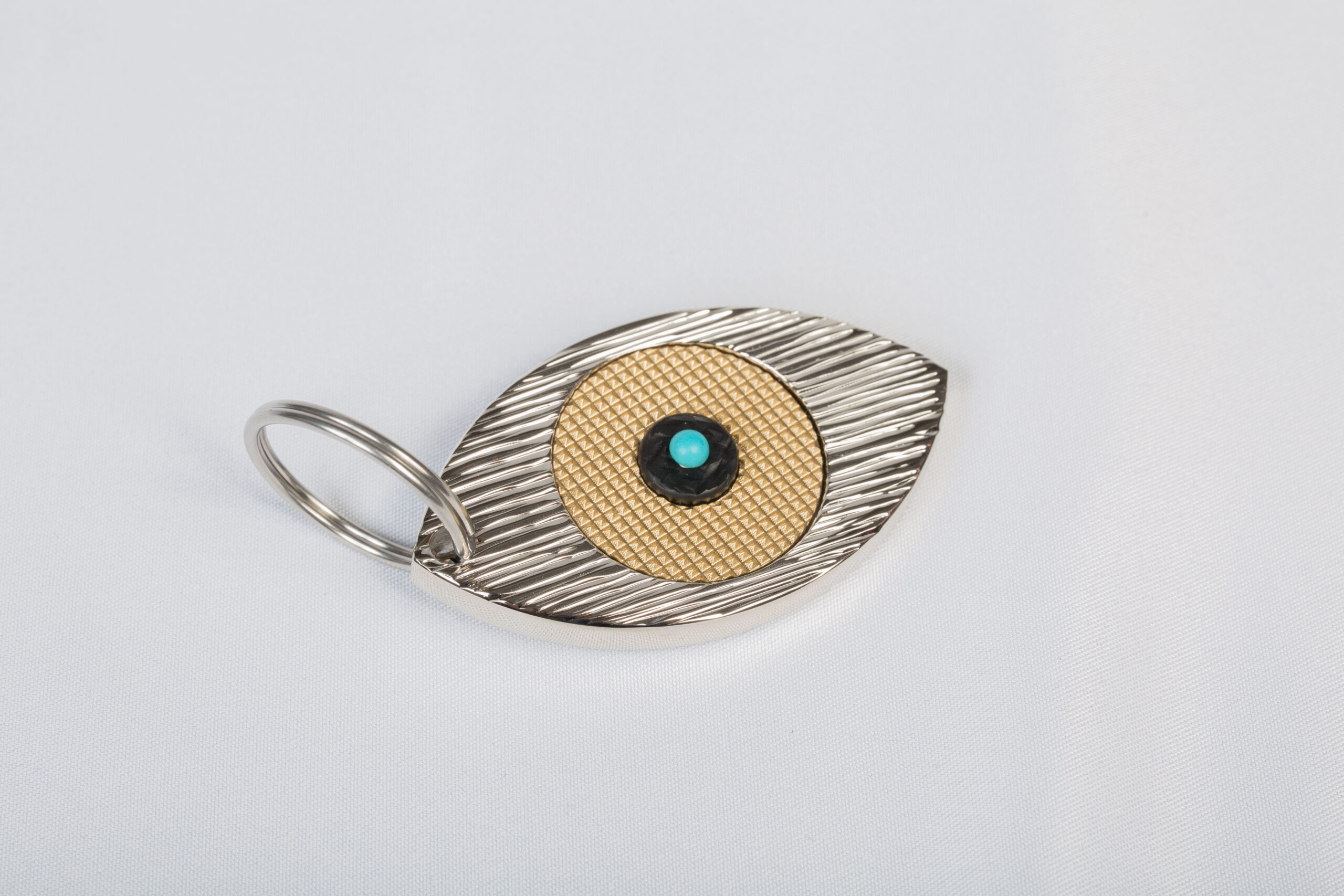 Porte-clefs Oeil de la ‘Collection Eye’ Nickel brillant, or mat et noir.
