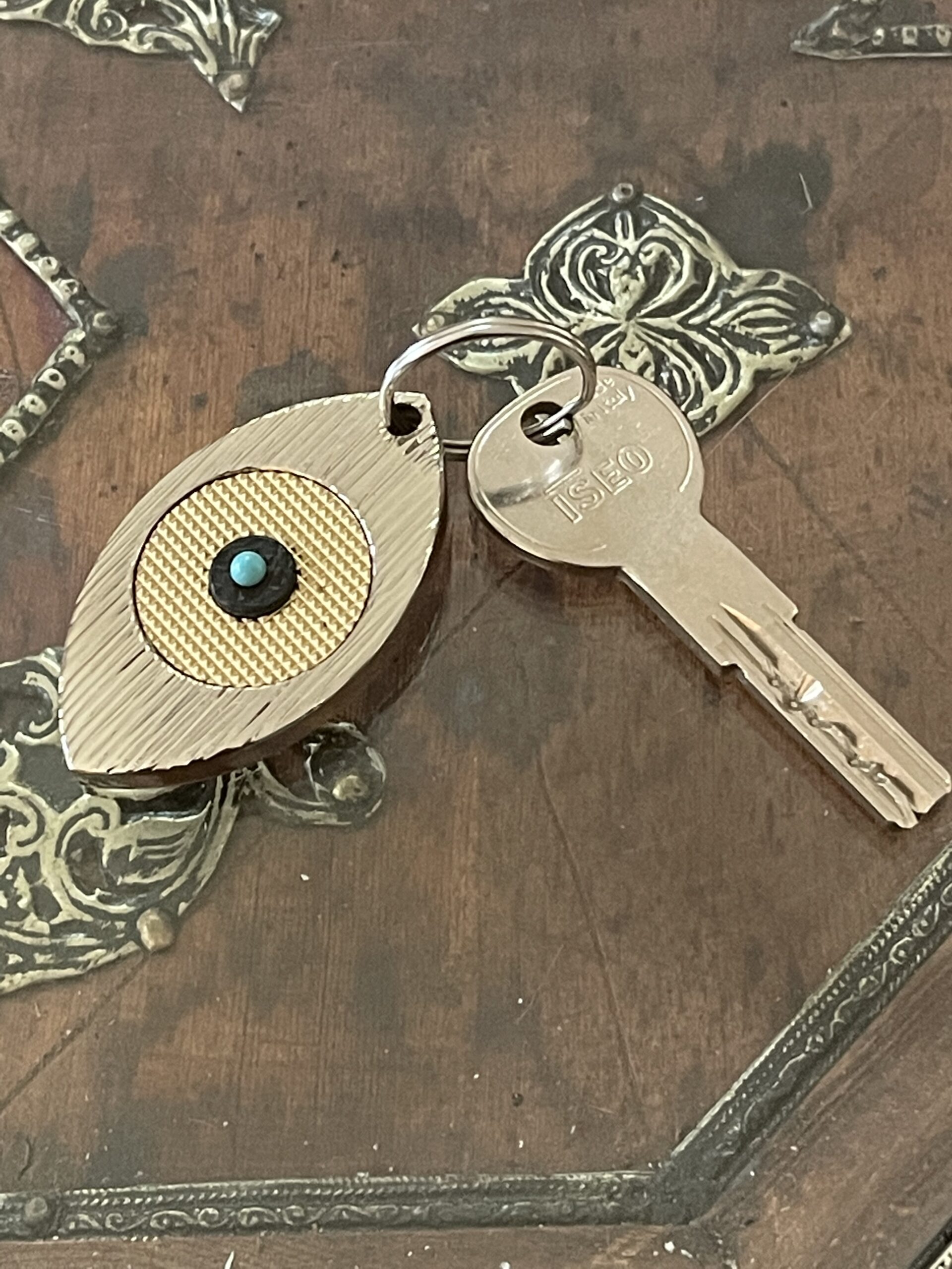 Porte-clefs en laiton massif Nickel brillant, or mat et noir.