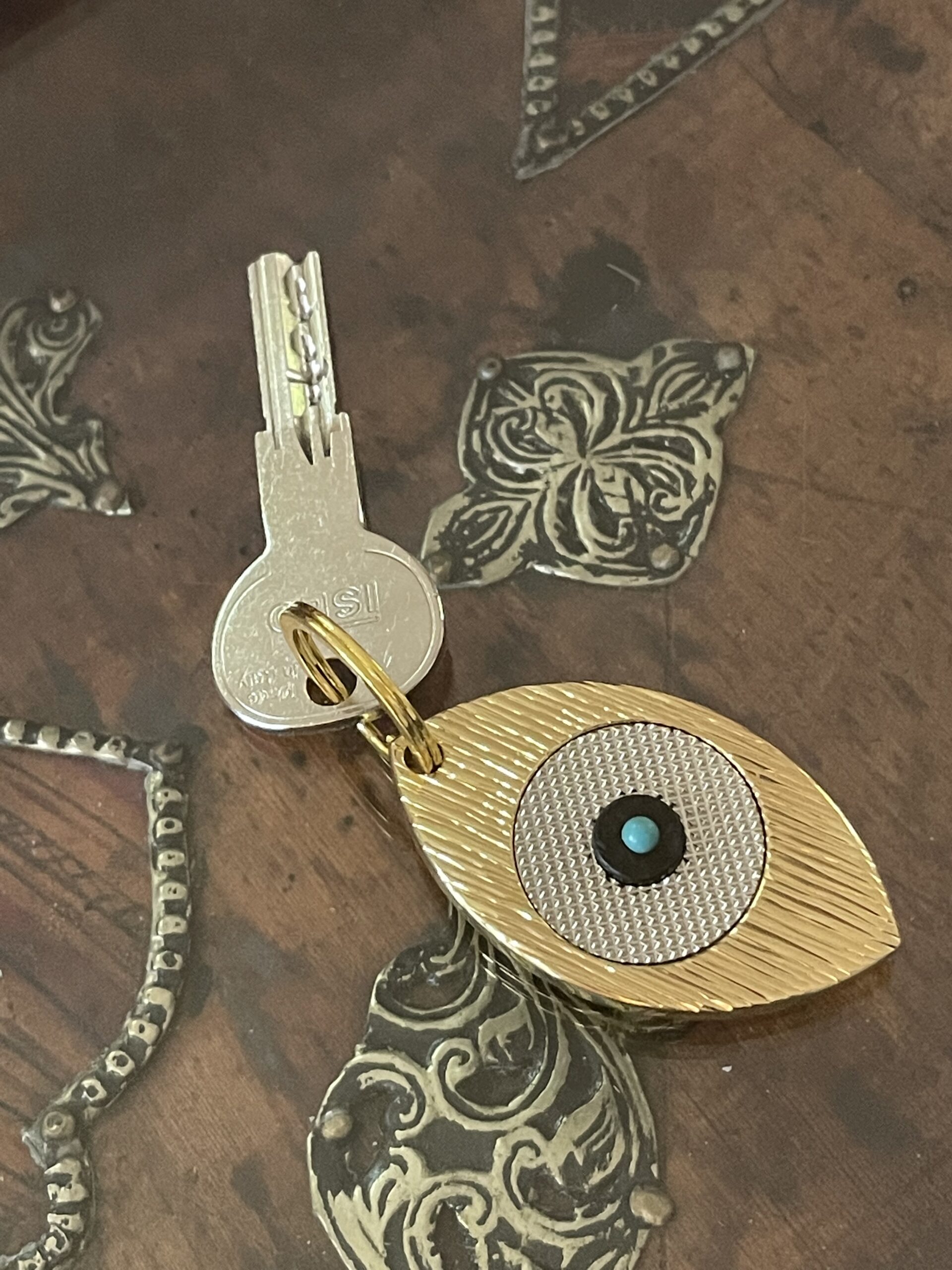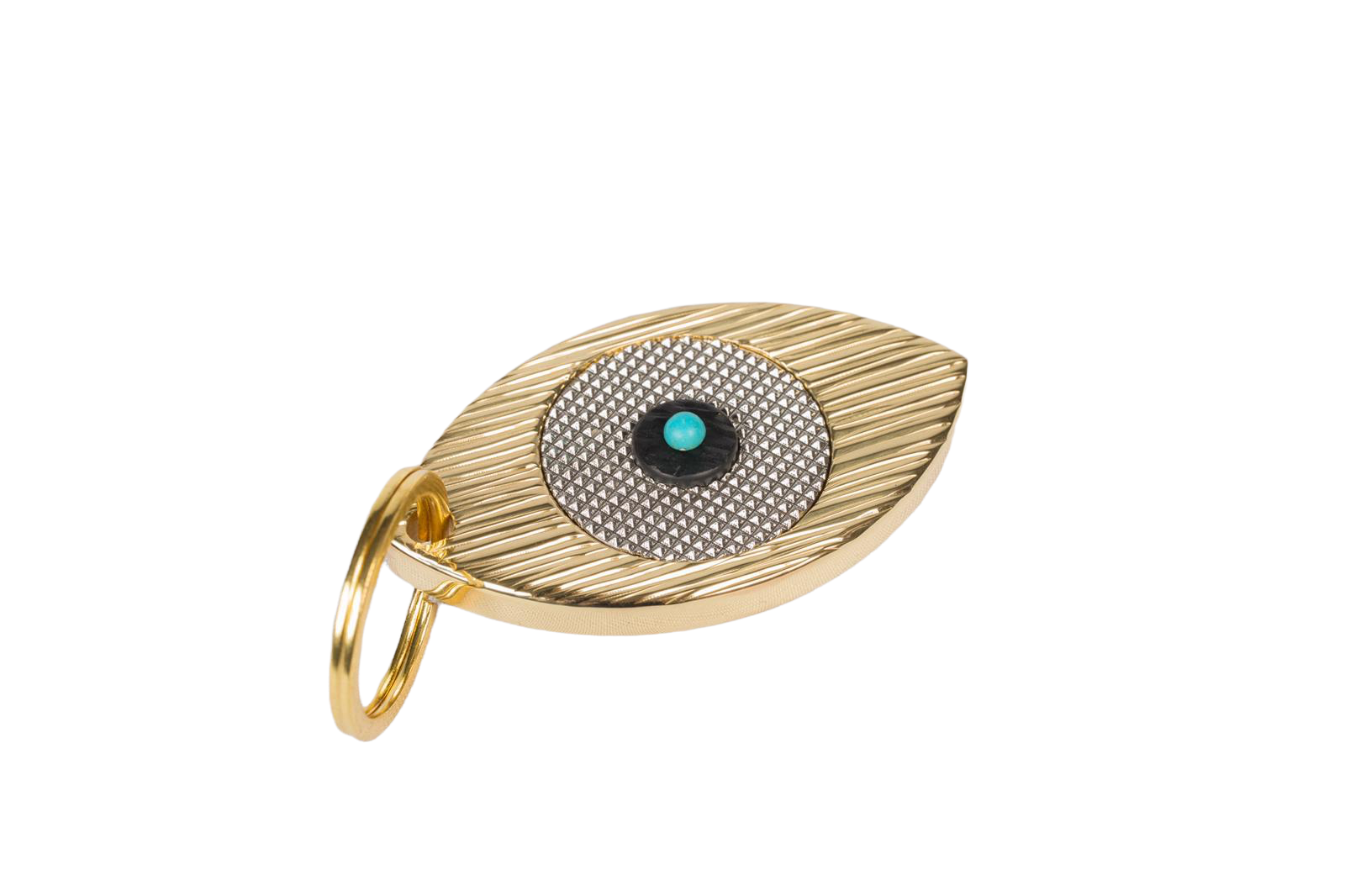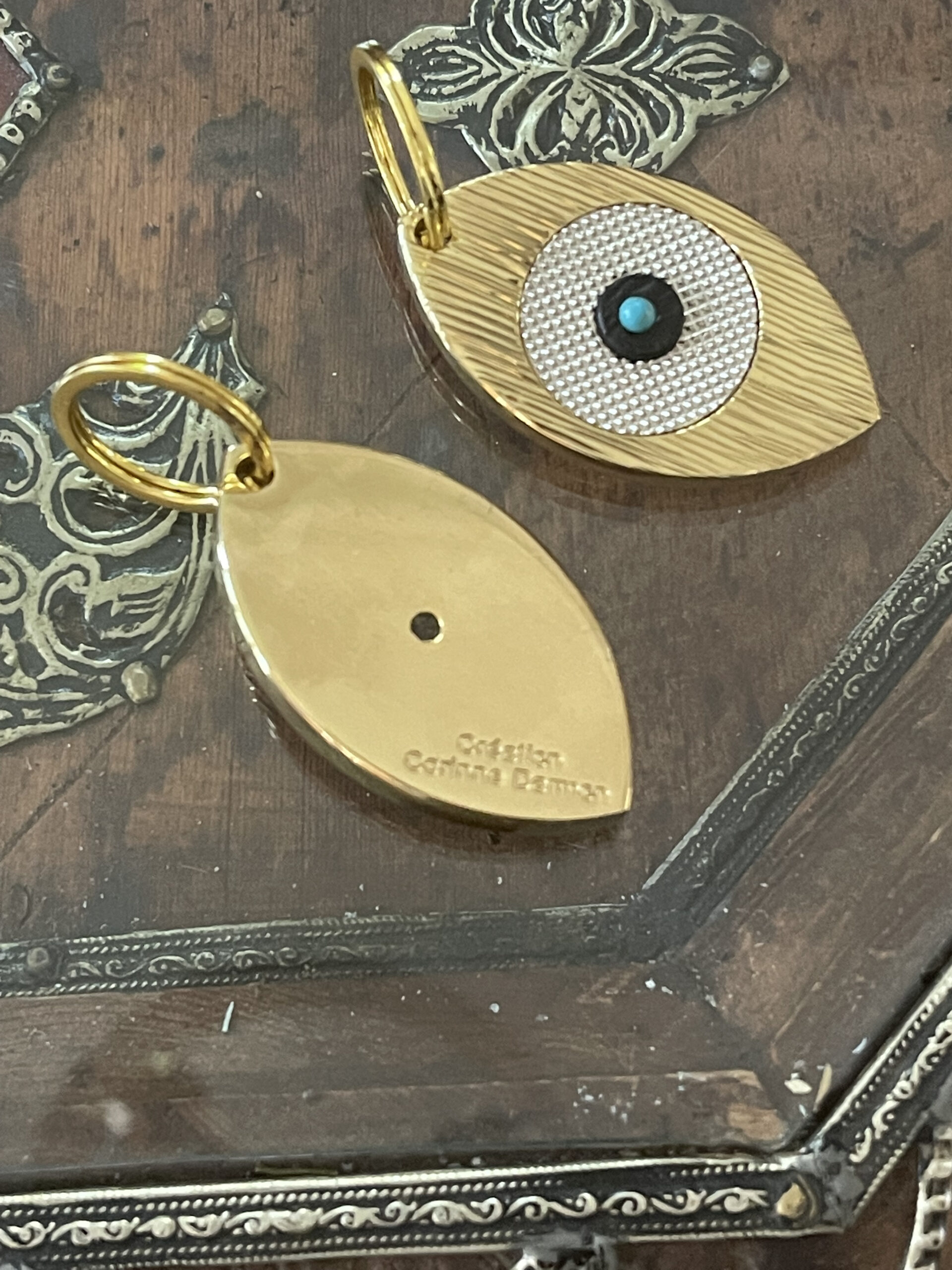 Porte-clefs Oeil de la ‘Collection Eye ‘en laiton massif Or brillant, nickel brillant et noir.