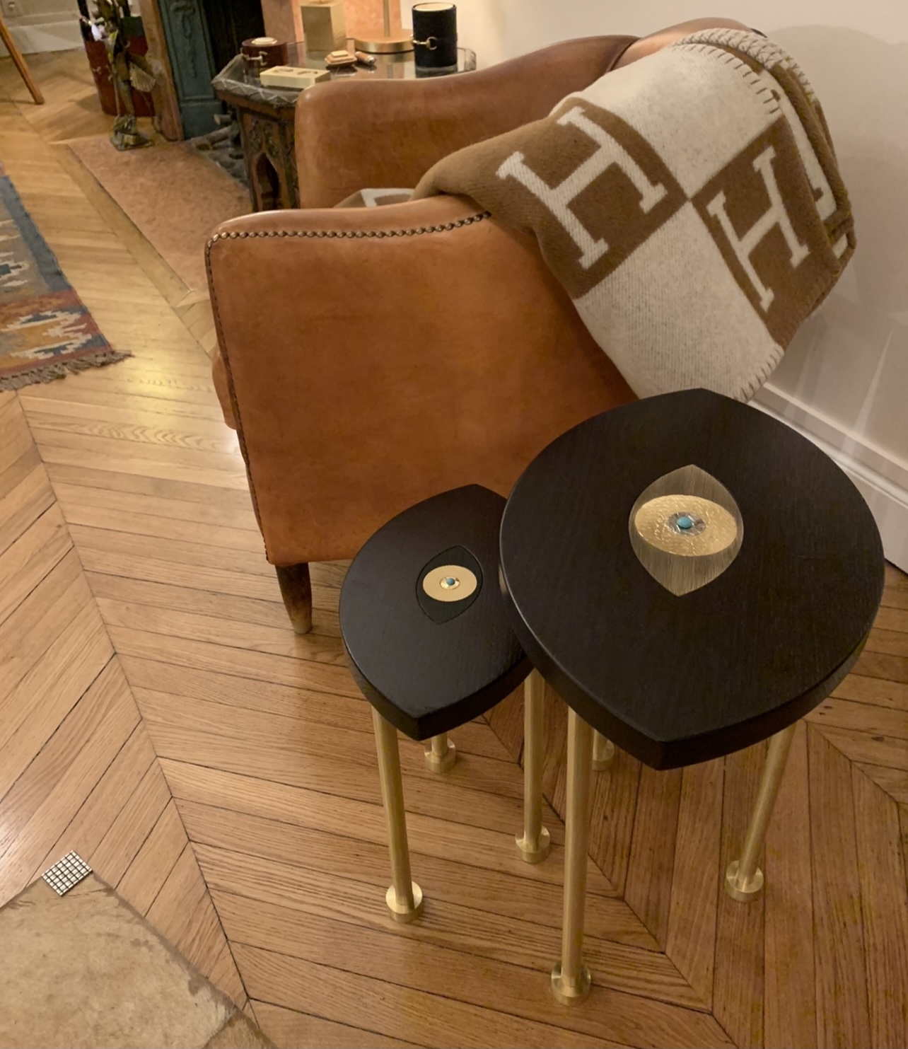 Table Oeil « Eye Protect You » GM Bronze mat, or mat et chrome.